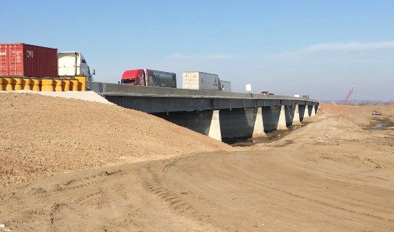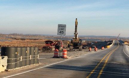 Meanwhile, Ames Construction began work on overflow bridges that would align the levee and increase the elevation of the highway. An eastbound bridge was open to traffic last week.