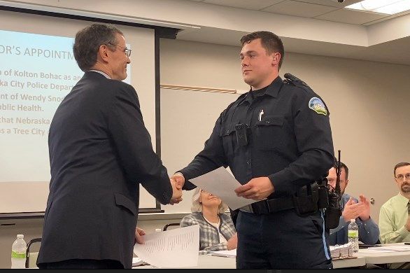 NEBRASKA CITY - Police Chief David Lacy introduced Kolton Bohac of Valparaiso as the latest addition to the Nebraska City Police Department.