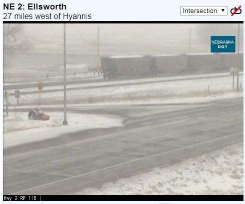 10 a.m. - Nebraska Department of Roads camera shows snow on Highway 2 at Ellsworth, 27 miles west of Hyannis, Neb.
