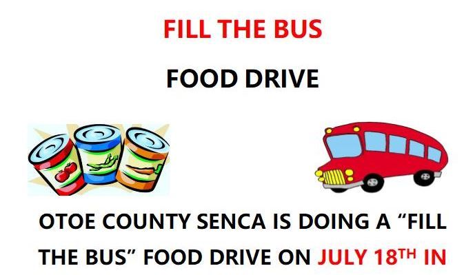 NEBRASKA CITY – A “Fill the Bus” food drive is planned in Nebraska City on Saturday, July 18.