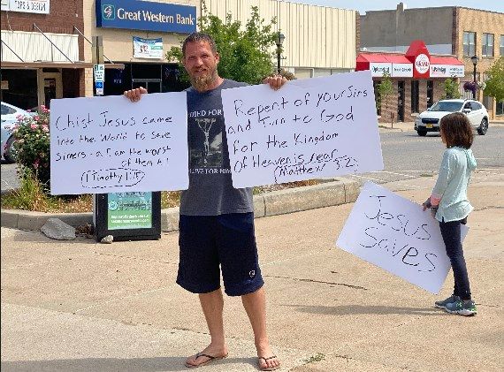 Steven Knapp said he and his daughters were holding signs at the intersection of Central Avenue and 11th Street to spread the truth and love of Jesus Christ.
