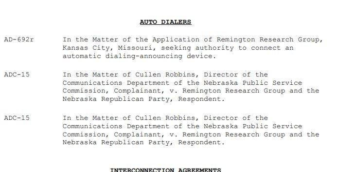 Remington: “We have always worked to be in compliance with all state laws across the country. After almost a billion calls across the country this is our first issue with a government body. Upon discovering we were not in compliance, we immediately contacted the Public Service Commission to report the mistake and applied for a license. We will continue to work with PSC to come into compliance. We apologize to both the Nebraska Public Service Commission and the Nebraska Republican Party for these issues.”