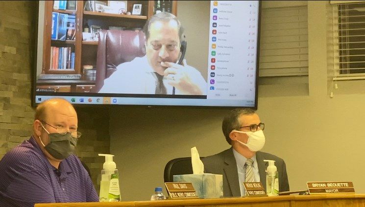 Anthony Cocca of Hy-Vee and Phil Hoey attended the meeting on the Zoom platform and said a site plan for the seven acres owned by Kevin Barrett considers traffic flow and a truck path.