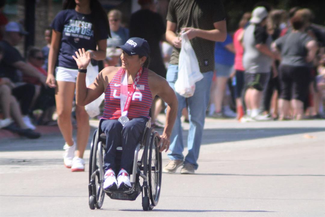 Paralympian Cheri Becerra Madsen was the parade's grand marshal. She won silver and bronze medals in the Paralympics of the Tokyo Games.