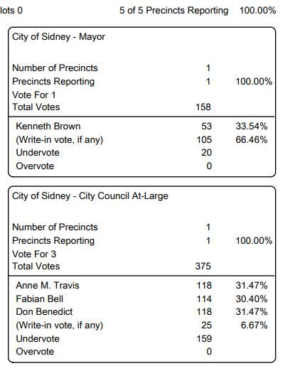 SIDNEY – Kenneth Brown received 33 percent of the vote Nov. 2 for mayor of Sidney to win with a total of 53.