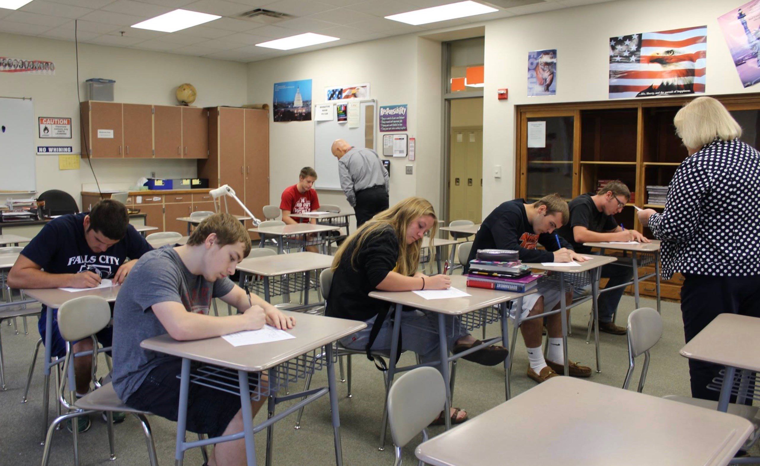 Photo: In 2016, Richardson County Clerk Mary Eickhoff and assistant Clerk Patty Brown assisted in registering students to vote at Falls City High School