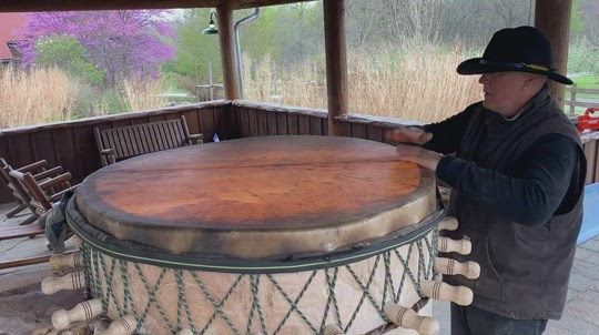 The drum is topped by a male buffalo hide that will cast an amber glow from a light inside the drum.