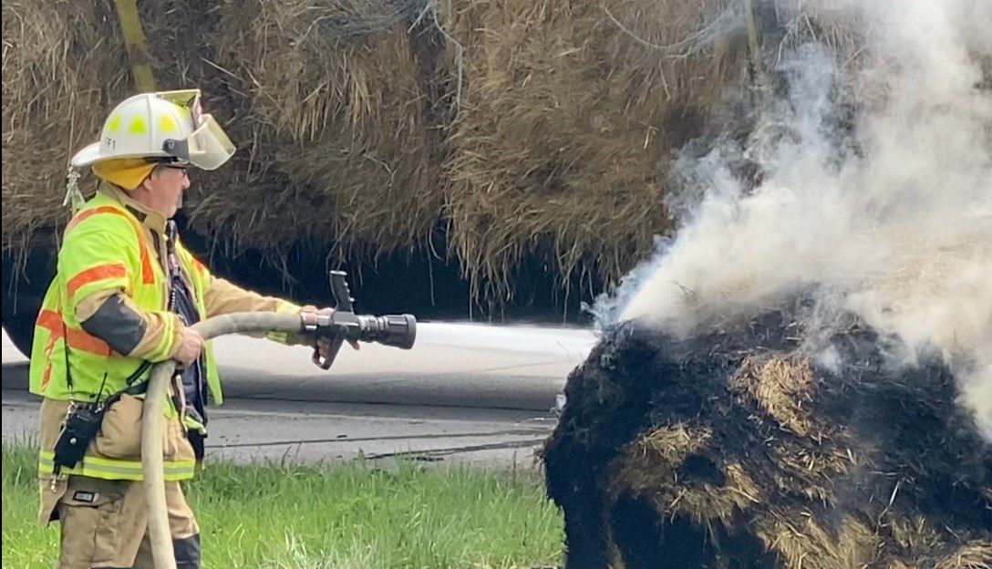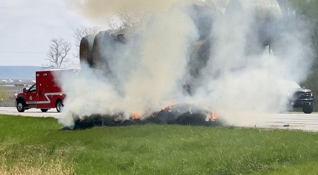 Firefighters were able to spread out the bale and extinguish the fire before it could spread to the rest of the load.