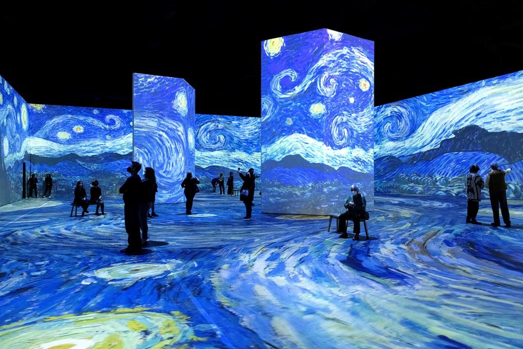 The exhibit features more than 300 of Van Gogh's iconic masterpieces, including "The Starry Night". The fully immersive exhibit utilizes 3D projection technology to portray Van Gogh's work on the walls as visitors stroll through.