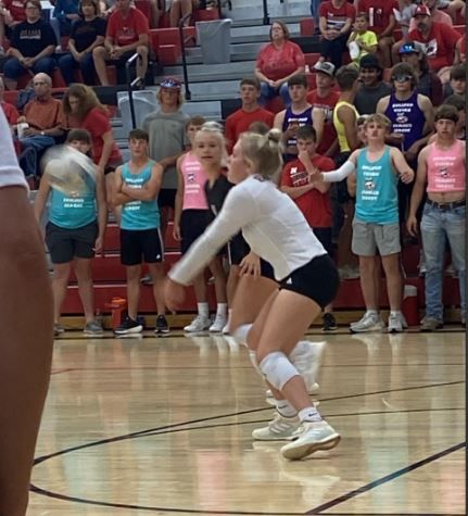 JOHNSON -- Chloe Vice of Johnson-Brock is the state leader in high school volleyball with 190 digs out of 20 sets plays. Kallie Brack of Weeping Water has 178 digs.