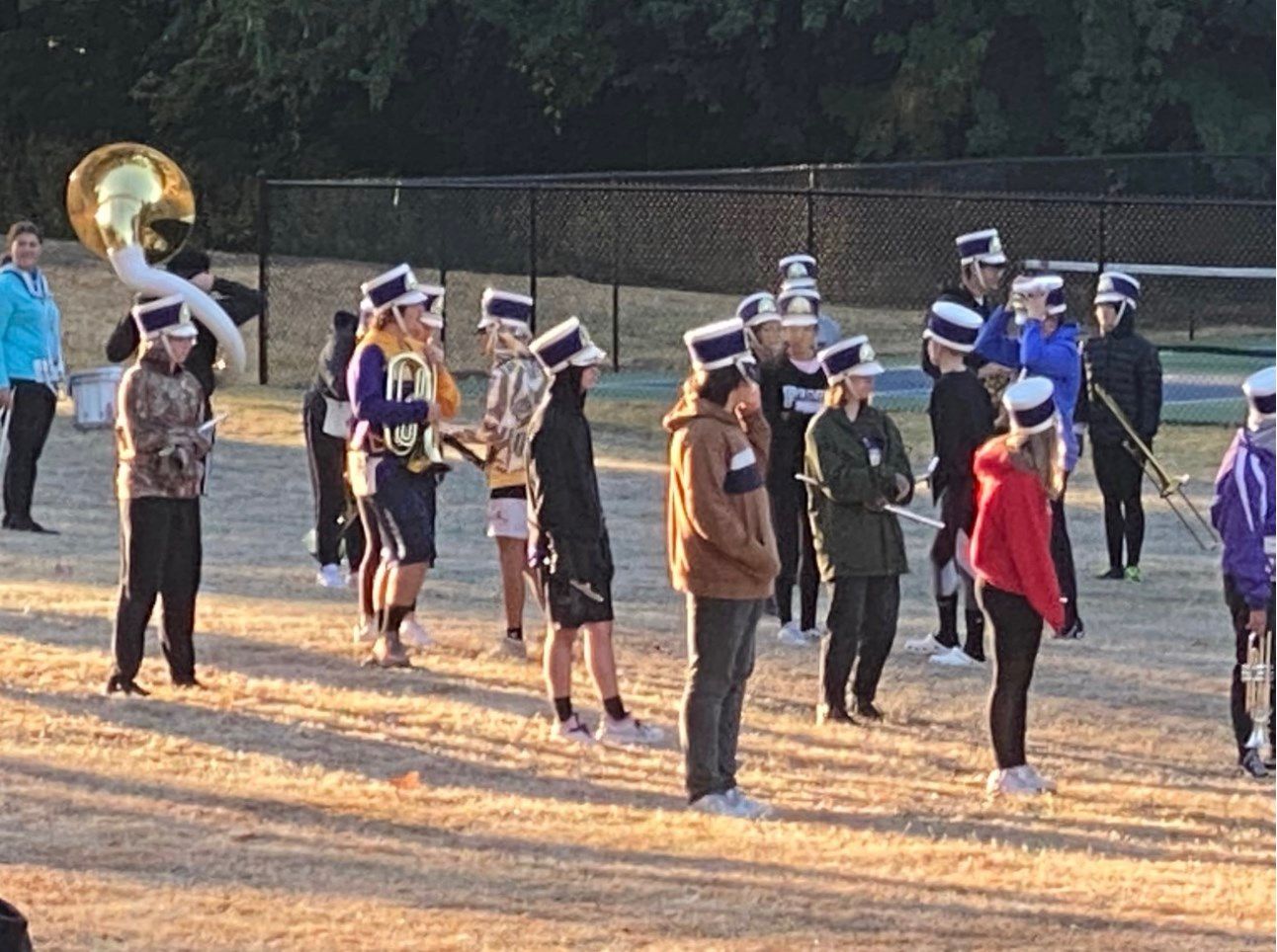The Nebraska City band practices at Steinhart Park with frost on the ground at 8 a.m.