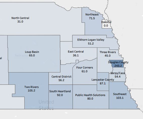 Sarpy/Cass has a rate of 54 and Lancaster County 87.