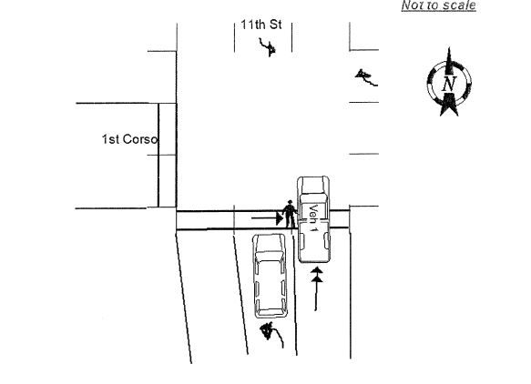 Pickup mirror made contact with pedestrian at 11th Street crosswalk