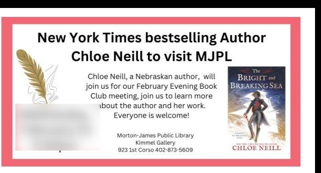 NEBRASKA CITY – The Morton-James Public Library will host a book signing by Omaha author Chloe Neill at the Kimmel Gallery on April 20 at 5:30 p.m.