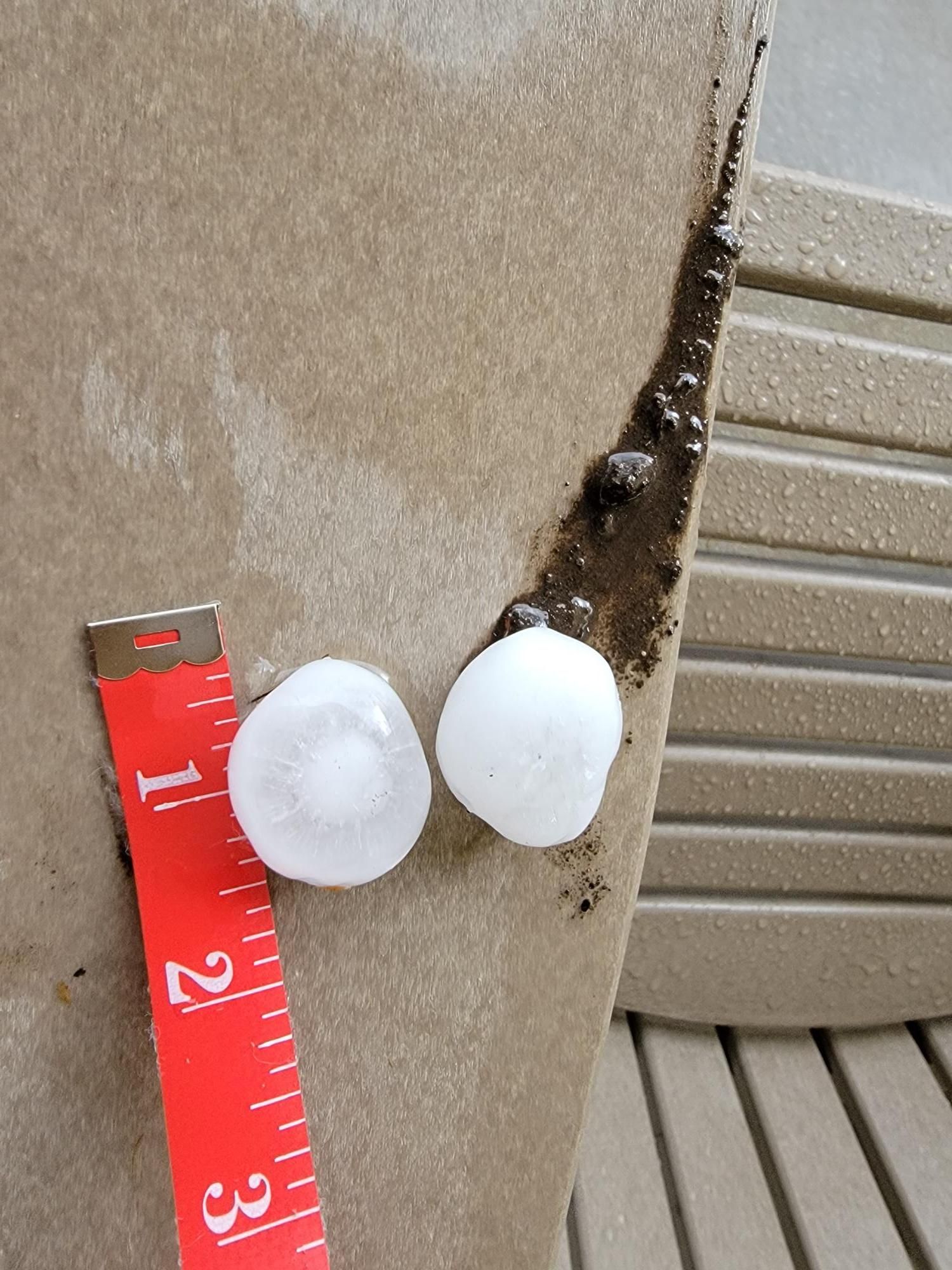 The public reported 2.25" hail at Auburn, which is baseball sized. A trained spotter reported 2" hail.
