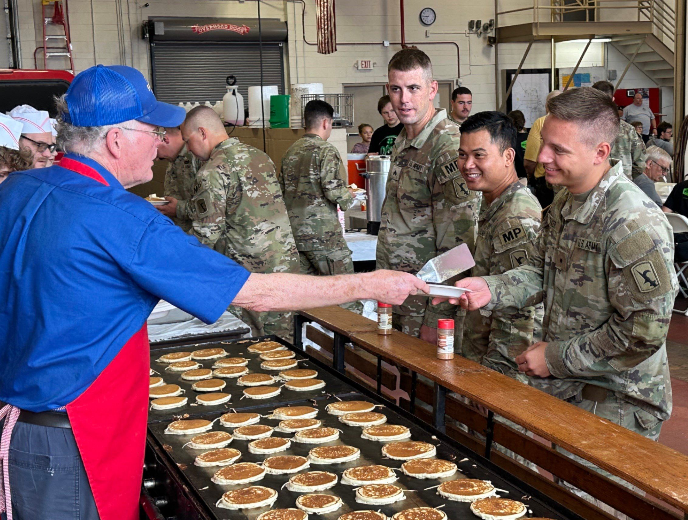 Nebraska National Guard in pancake line