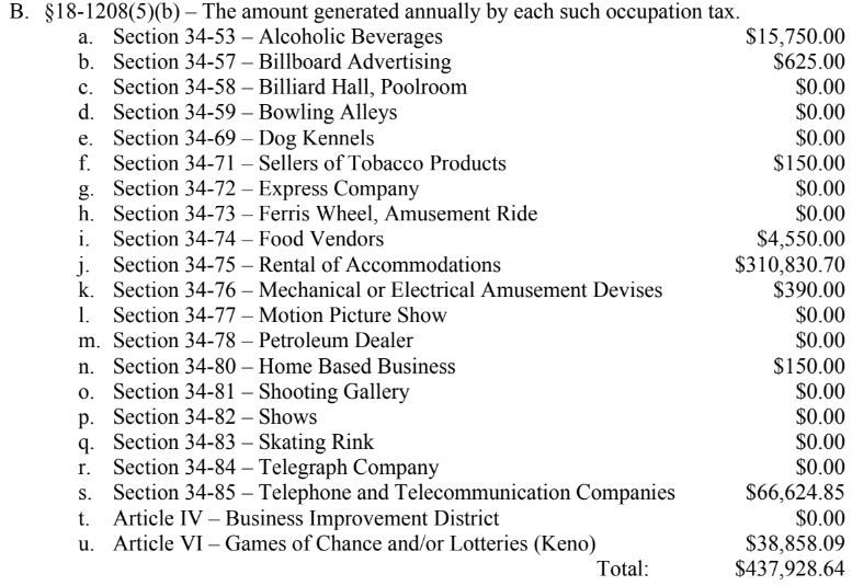NEBRASKA CITY - The city’s occupation tax report for the budget year ending in September shows a total of nearly $438,000.