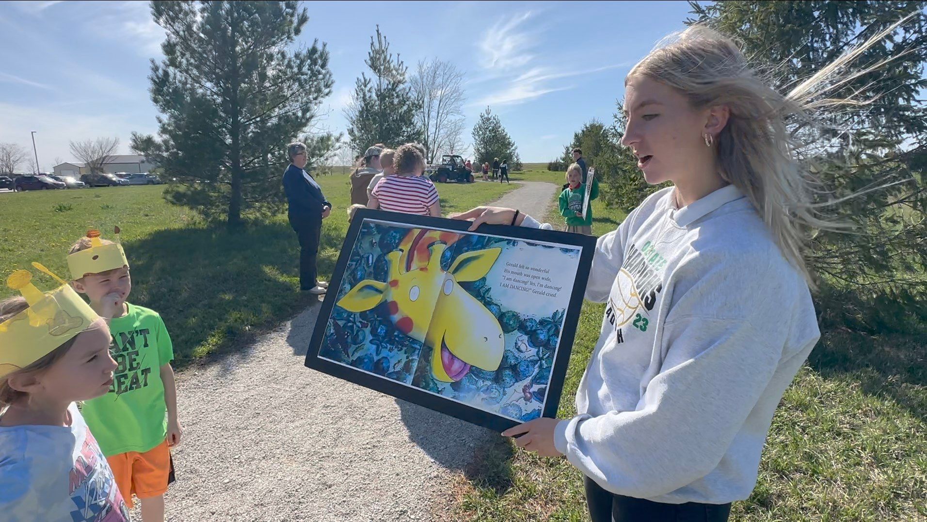 The students presented the books Giraffes Can’t Dance and poetic rhyme Brown Bear, Brown Bear.