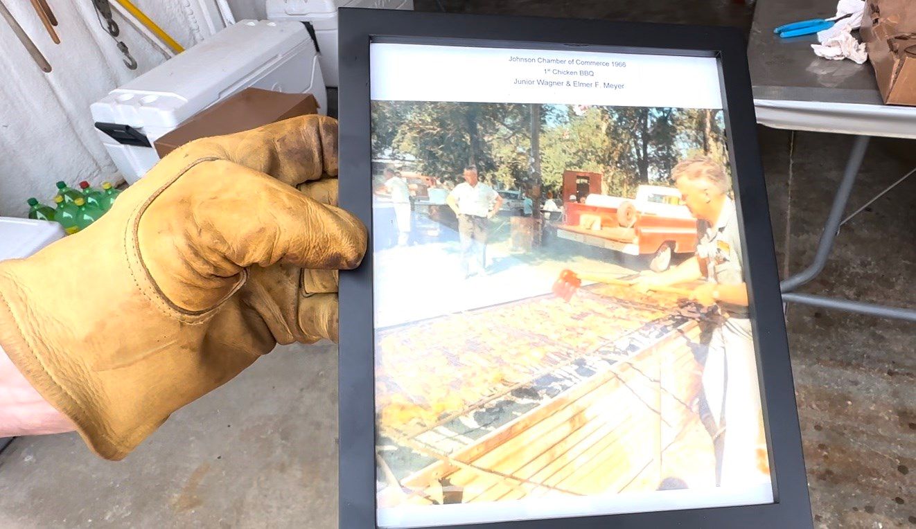 Prior to the storm, Terry Wagner of the Johnson Chamber of Commerce marked the 60th anniversary with a photograph of his dad, Junior Wagner. Junior was pictured at the first chicken barbecue in 1966, where 450 chicken halves were served.
