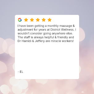 As one of the area’s top-rated chiropractor in Arlington, Virginia, Dr. Hamidi brings together the latest techniques in chiropractic adjustments, functional rehab, and lifestyle optimization. His approach is gentle, personalized, and rooted in the belief that the body heals best when it’s in alignment. At District Wellness, patients not only find relief from pain—they discover a path back to energy, movement, and long-term vitality.