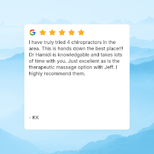 Dr. Hamidi believes that the best care doesn’t just chase symptoms—it builds resilience. That’s why his chiropractic care includes a holistic plan to support nervous system health, reduce inflammation, and enhance the body’s natural healing capacity.
