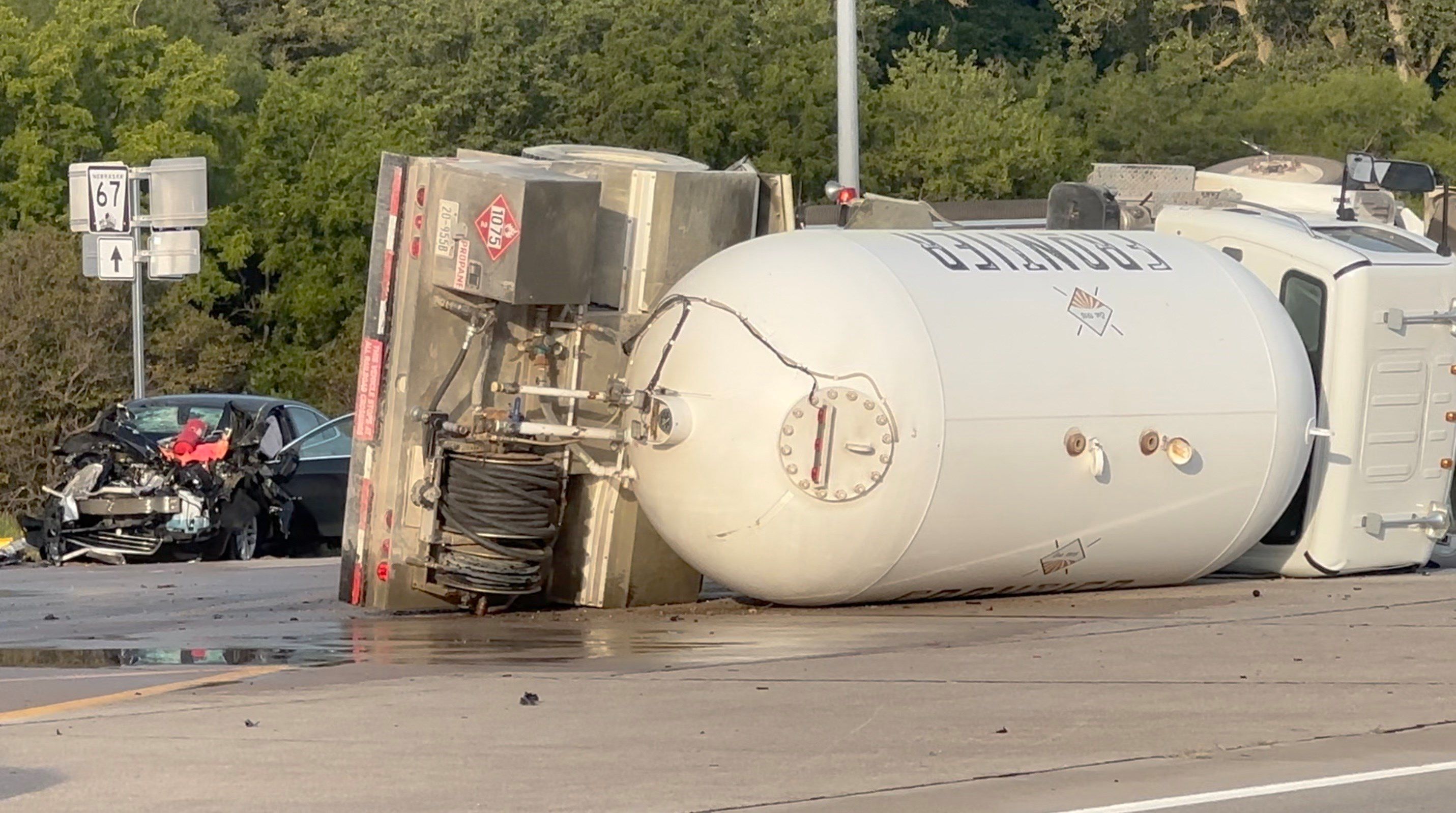 NEBRASKA CITY – Passerbys are credited with assisting the driver of a Chevy Malibu and firefighters shut off propane leak on a tanker after a collision Monday morning at the intersection of Highway 2 and Highway 67 at Dunbar.
