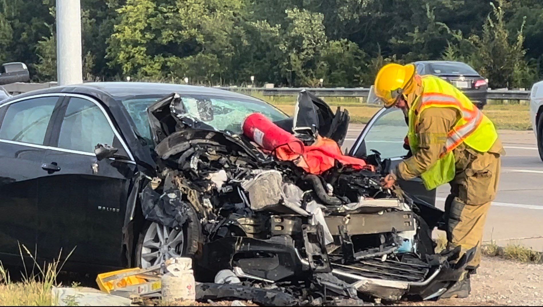 The call was dispatched at 7:19 a.m. with injuries and a fire. There was air bag deployment on the Malibu, but no fire.