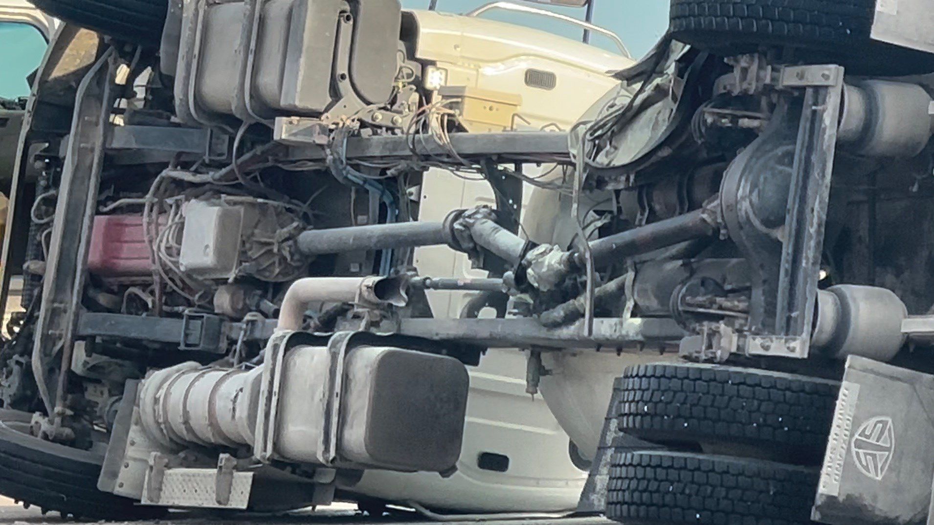 A motorist that stopped to assist said someone used a fire extinguisher to put out flames on the overturned truck.