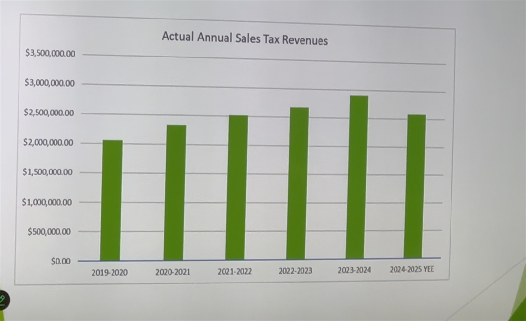 Sales tax revenue this year is just above the 2022 level at $2.5 million, but below the $2.6 million forecast.